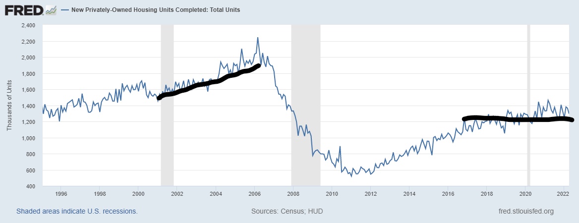 As we can see, it’s been a wild 2022 already; the massive home price gains from 2020 have left the housing market vulnerable to a payment shock that has impacted demand more than it would have if home prices grew less than 4.6% a year during 2020-2024. This is why I had a set goal of price growth during this period: if home prices grew over 23% during these five years, it would be a major red flag.