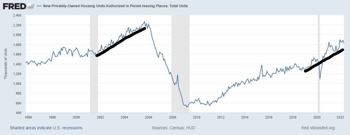 When the economy is expanding, housing permits grow. However, on a historical basis, when housing permits are in decline, that is when people start talking about a recession. For the first half of 2022, housing permits were a plus for America.
