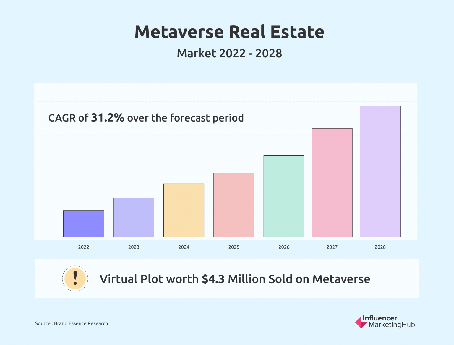 As forecasts show, a compound annual growth rate (CAGR) of 31.2% between 2022 and 2028 indicates that there’s plenty of potential for investments made today to grow in value, and with a virtual plot of land selling for $4.3 million already, we can see that big money is already being thrown around by investors.