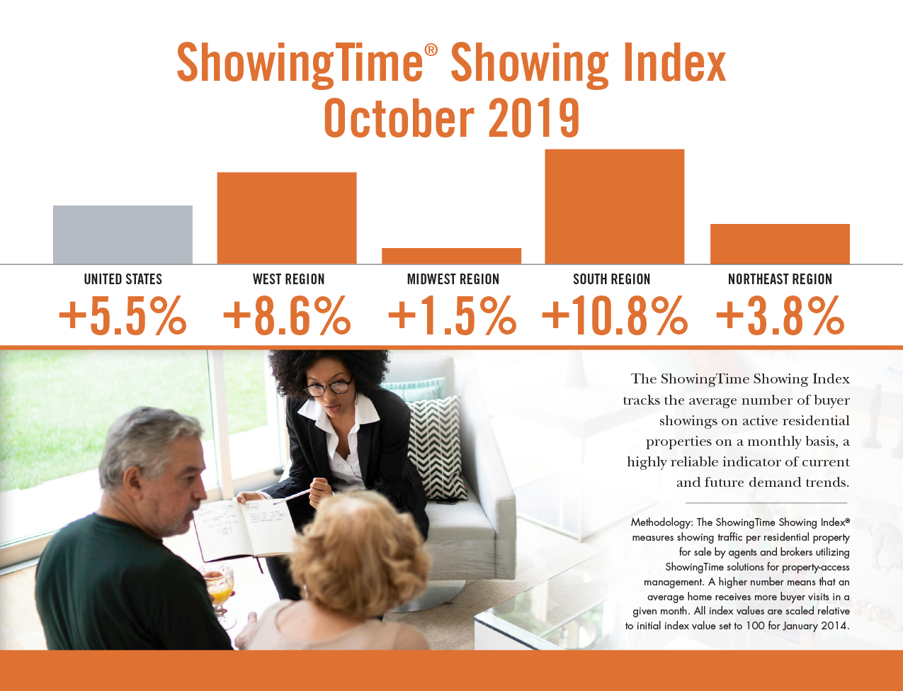 October home showing traffic was more active once again compared to 2018, as the nation saw its third straight month of higher year-over-year showing activity, according to the latest ShowingTime Showing Index report.