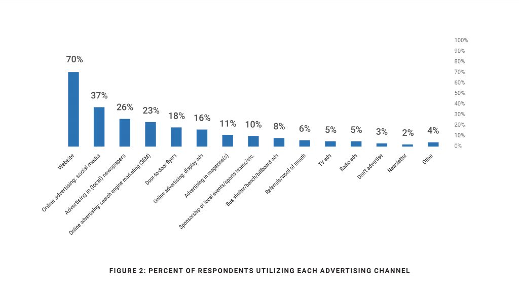 The quantitative study of 300 active agents, team leaders, and brokers also revealed that websites and digital marketing are the top marketing tools used by real estate professionals today. 70% of those surveyed had a website, while 38% actively advertise in social media. The next most popular advertising channel was local newspaper advertising at 26% and search engine marketing at 23%. Other advertising channels used by more than 10% of real estate professionals include local sponsorships, magazines, online display ads and door-to-door flyers.