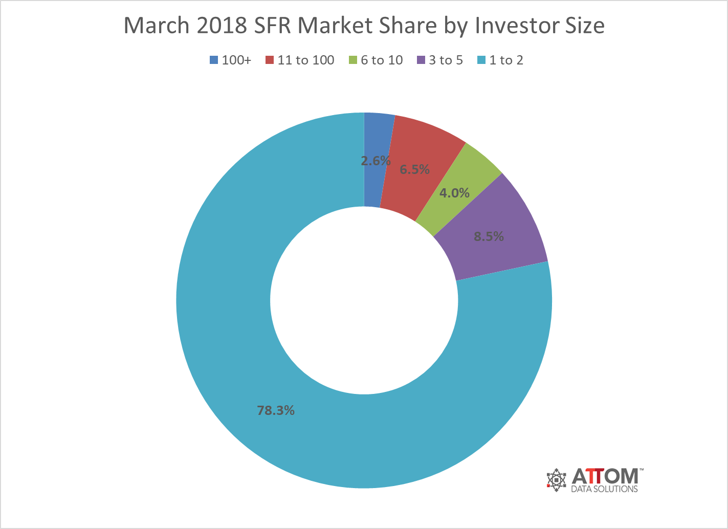 “Despite declining returns in many areas, the single-family rental market continues to grow thanks to more activity by smaller and middle-tier investors,” said Daren Blomquist, senior vice president at ATTOM Data Solutions. “The biggest increase in market share over the past year has come among investors owning six to 10 single family rentals, followed by those owning between 11 and 100 rentals. These smaller to mid-tier investors are benefitting from newfound efficiencies in acquisition, financing and property management that allow them to buy outside their backyard in areas with higher potential returns, and to leverage their money to buy more properties.”