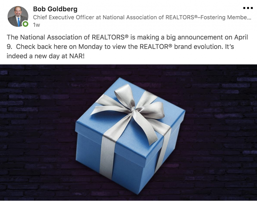 It all started when NAR CEO Bob Goldberg teased on his Linkedin account that The National Association of REALTORS had something big to announce. It’s safe to say that many people were eagerly anticipating the ‘brand evolution’ on April 9. It seems the reveal shook those who were looking for a larger deviation from the original brand, but were greeted with a pretty similar logo and the removal of the word REALTOR.