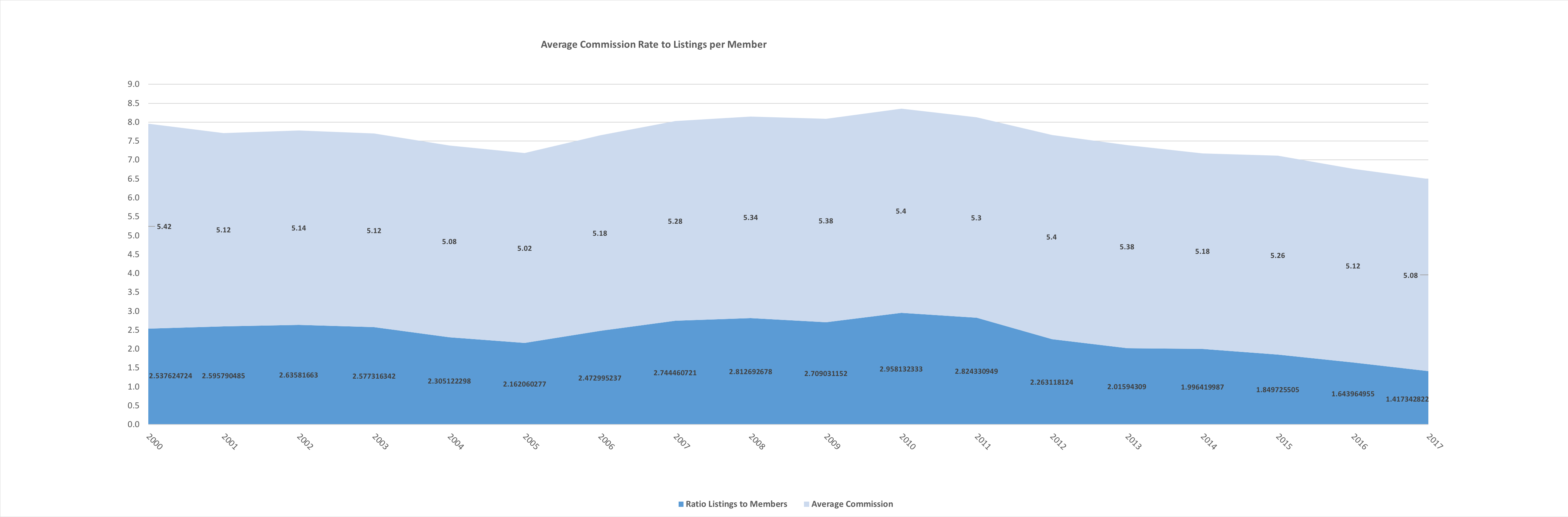 We examined the average number of listings in the national market from 2000-2017; the average number of Realtors over that same period and compared the ratio of listings to Realtors against the average commission rate for each of those years. (See attached exhibit #1.)